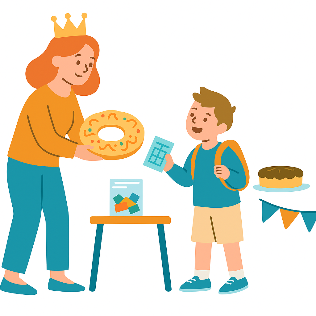 Chaque année, les enfants ont la délicate mission de vendre un maximum de cases dans leurs grilles de tombola pour gagner le lot du meilleur vendeur. Chaque grille a un gagnant (galette des rois) et il y a un grand gagnant tiré au sort.